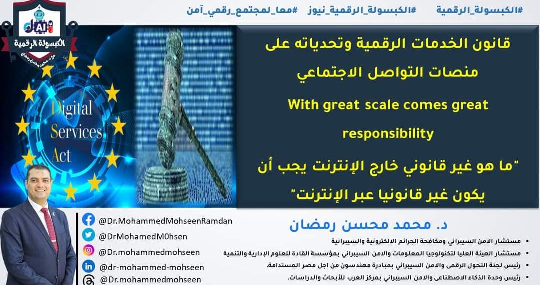ان عصر الرقمية الذي نعيش فيه شهد تطورات هائلة في مجال التكنولوجيا والاتصالات، وقد أدى ذلك إلى تغيير جذري في كيفية تفاعلنا مع العالم من حولنا. من بين أبرز التطورات التي نشهدها هو انتشار وسائل التواصل الاجتماعي وتأثيرها الكبير على حياتنا اليومية ومع دخول قانون الخدمات الرقمية حيز التنفيذ، فإن لهذا التأثير أبعادًا جديدة وتحولات متوقعة ويعتبر قانون الخدمات الرقمية هو تشريع يهدف إلى تنظيم وضبط الخدمات الرقمية التي تقدمها الشركات عبر الإنترنت، مثل وسائل التواصل الاجتماعي ومنصات مشاركة المحتوى حيث تمثل هذه الخدمات الجزء الأساسي من حياة الملايين حول العالم، يستخدمونها للتواصل، ومشاركة الأفكار، واكتساب المعلومات، والترفيه ودخول قانون الخدمات الرقمية حيز التنفيذ، لا يعتبر الإجراء الأول، لأنه منذ عام (2018م)، سنجد أن أول قانون قد صدر، هو قانون خصوصية البيانات ((GDPR، ودخل قانون الخدمات الرقمية (DSA) التابع للاتحاد الأوروبي حيز التنفيذ رسميًا بدءًا من (25) أغسطس (2023)، وبموجبه يجب على عمالقة التكنولوجيا، مثل (جوجل وفيس بوك وأمازون)، وغيرها، الالتزام بالتشريعات الشاملة التي تحمل المنصات عبر الإنترنت المسؤولية القانونية عن المحتوى المنشور عليها ،وعلى الرغم من إقرار هذا القانون الجديد في الاتحاد الأوروبي، فمن المرجح أن نشهد تأثيرات عالمية بعيدة المدى، حيث تقوم الشركات بتعديل سياساتها للامتثال لها. أن الهدف من هذه القوانين، هو حماية المستخدم من الإعلانات المضللة أو خطابات الكراهية المختلفة، من المنتجات المزيفة، التي يعاني منها المستخدمين أشد المعاناة.